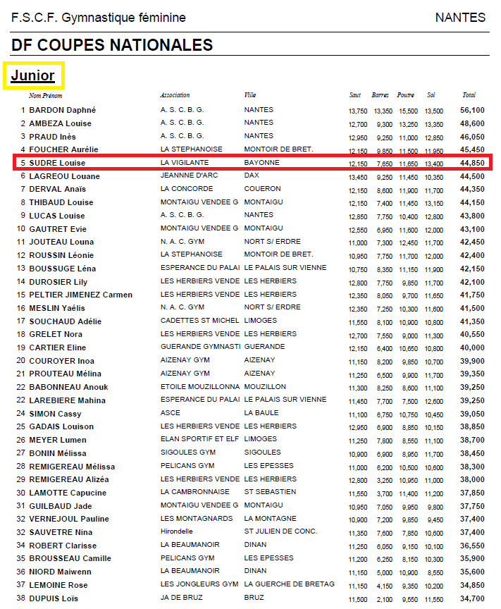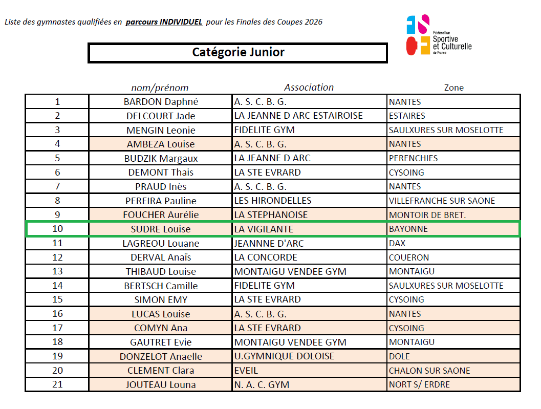 Félicitations à Louise qui gagne sa qualification pour la finale des Coupes Nationales.