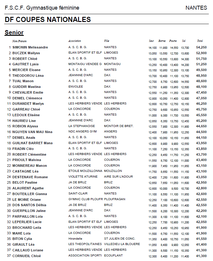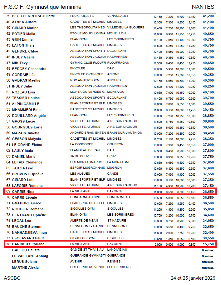 Suite à la qualification lors du 1er tour des Coupes Nationales, Alyxe, Inès, Louise, Cyriane et Nina ont participé ce samedi 24 janvier 2026 à la 1/2 fianles des Coupes Nationales à Nantes, accompagnées de leurs coachs Lola et Maxime.